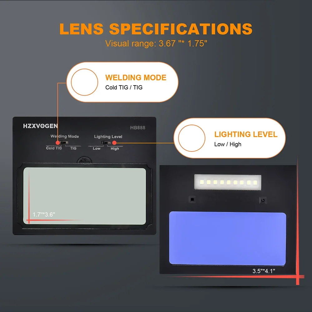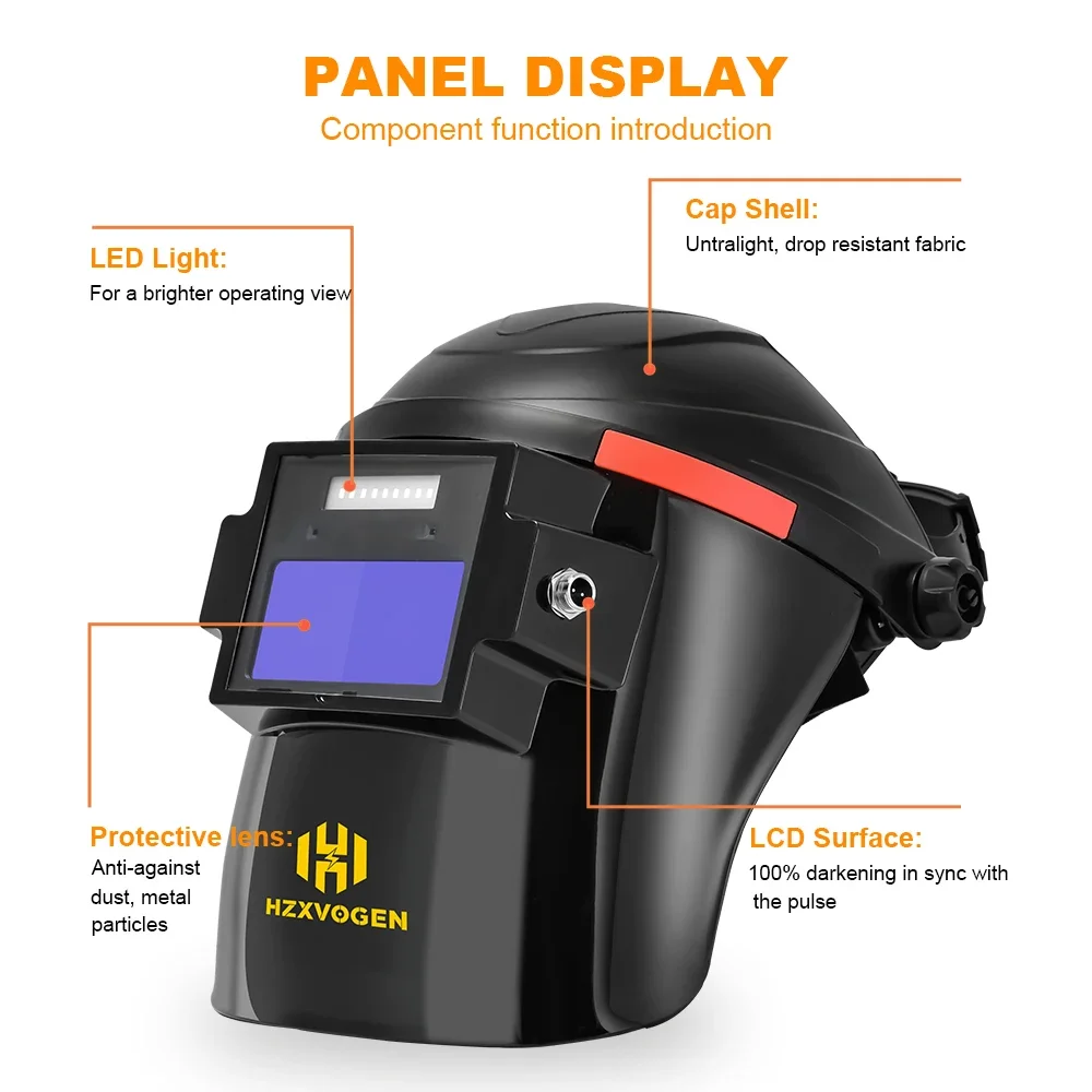 Casco de soldadura TIG en frío, oscurecimiento sincronizado con luz LED, casco de gran campo de visión.