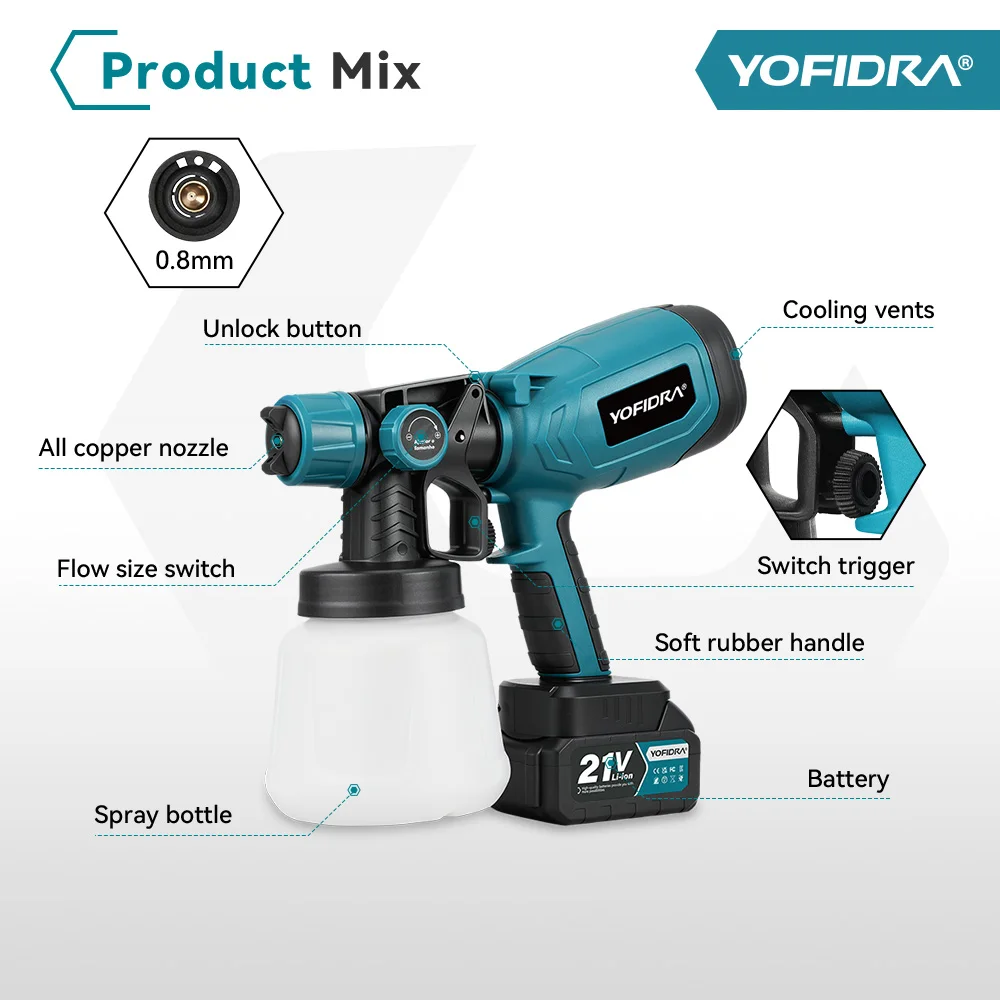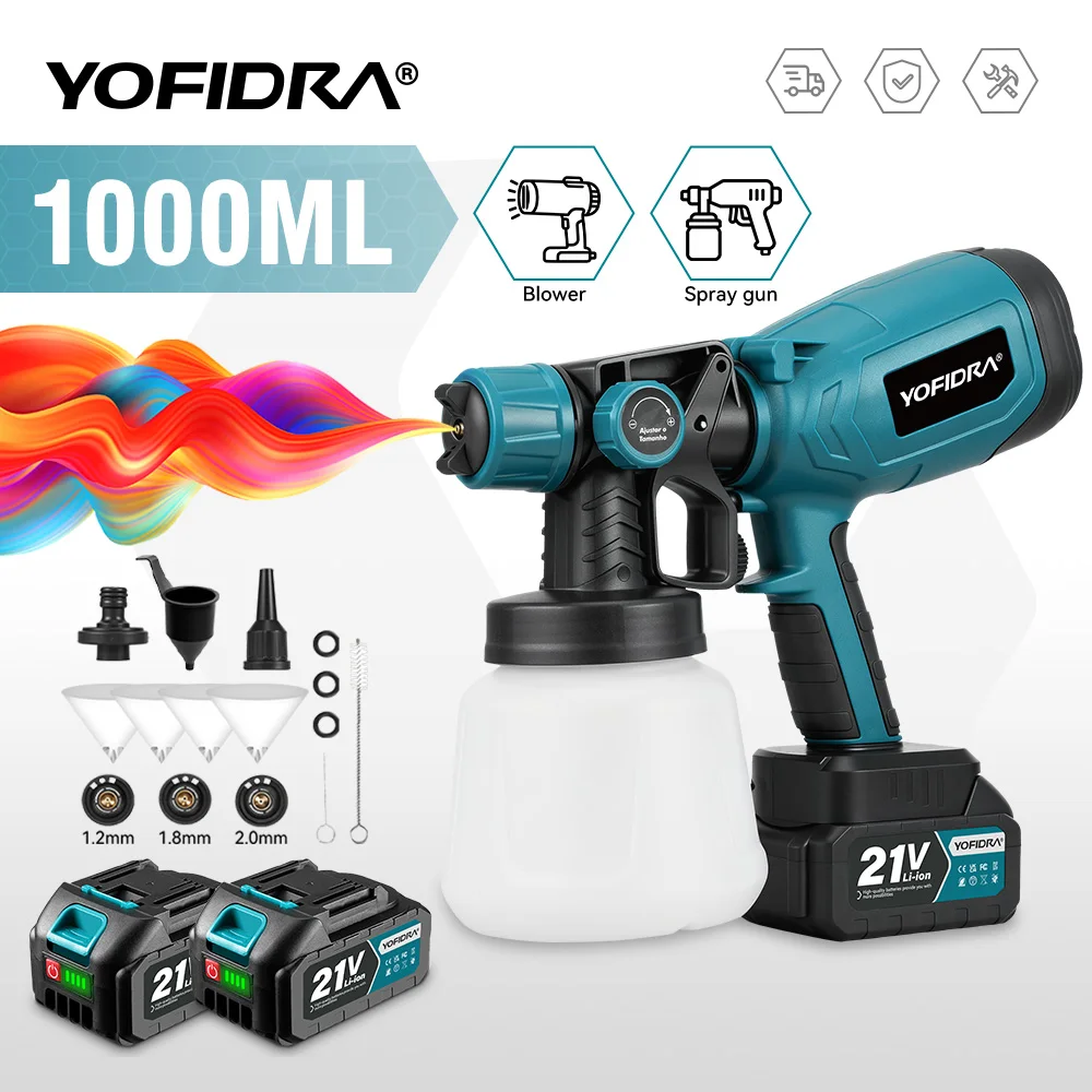 YOFIDRA – Pistola pulverizadora de 1000 ml, inalámbrica, para muebles, automóviles, revestimiento de acero.